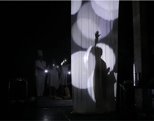 En la pieza artística se plantea cómo un ritual culinario que mezcla creencias y estereotipos en un intento de salvación desde la angustia. También en un grito atronador que quiere atravesar los individuos que miran desde la sombra.